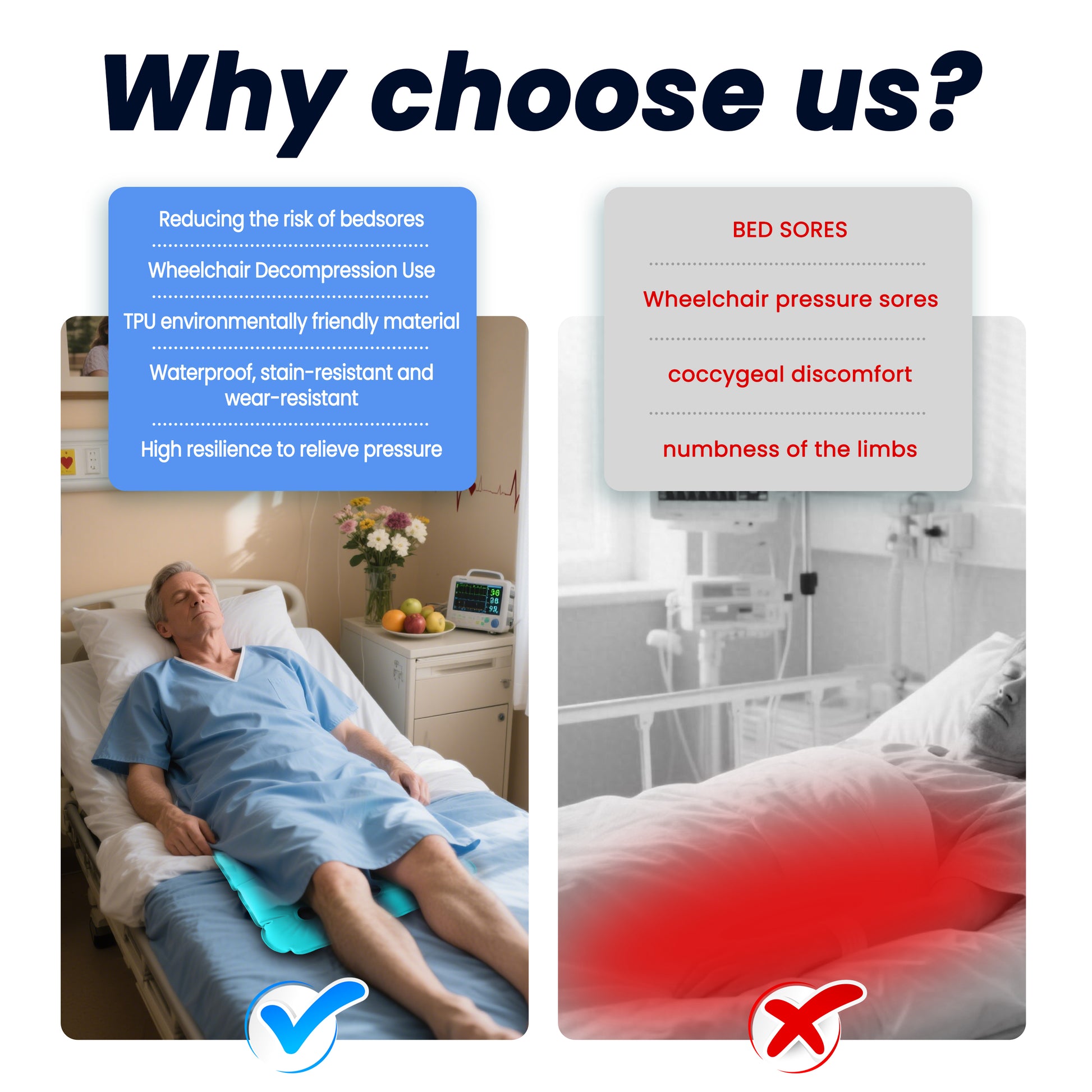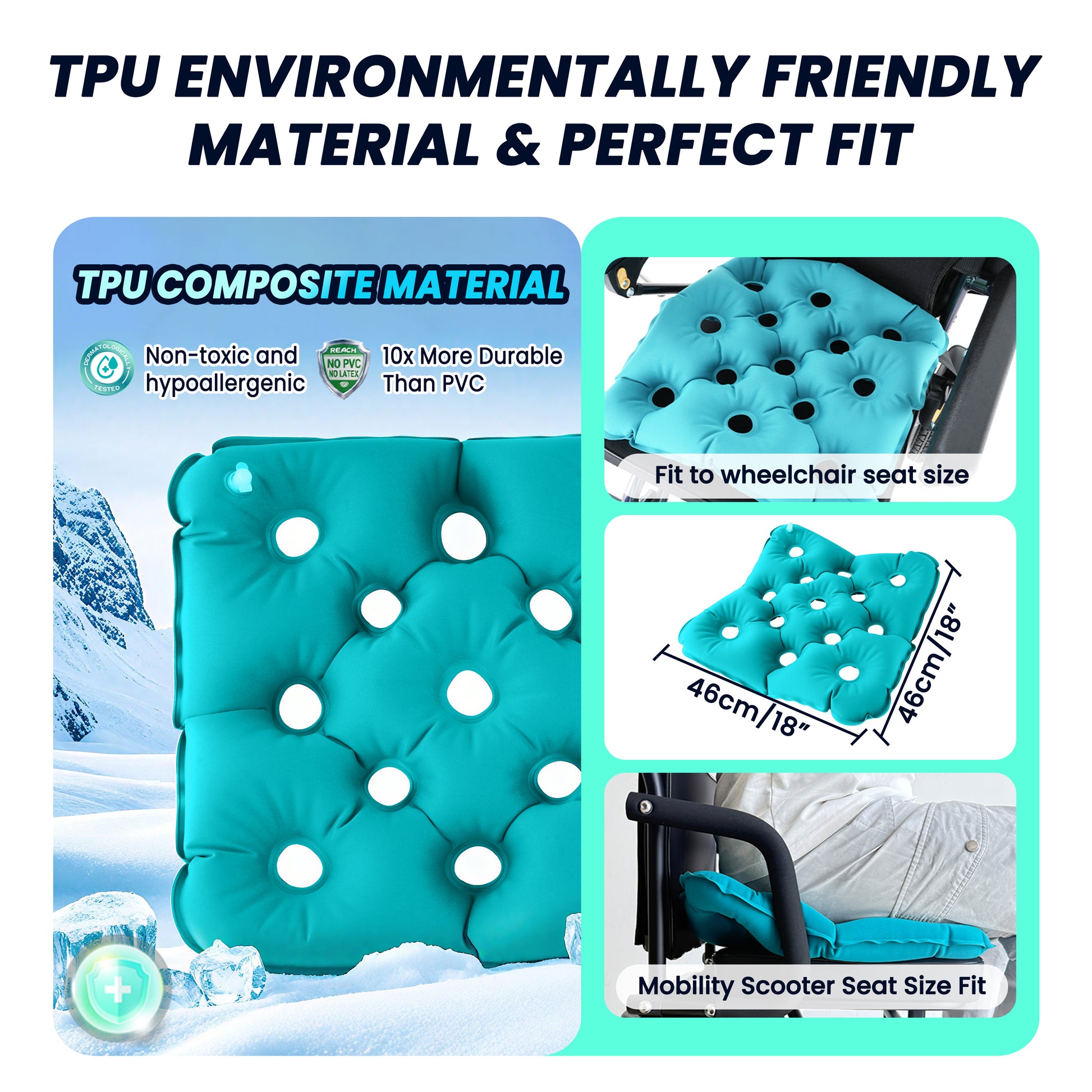 Made with medical-grade TPU fabric, it’s durable, waterproof, and perfect for wheelchair users, office workers, travelers, and outdoor enthusiasts.The high-temperature sealed air pores evenly distribute weight, reducing stress on your hips and back—making it an ideal solution for preventing discomfort and promoting long-term sitting comfort.
