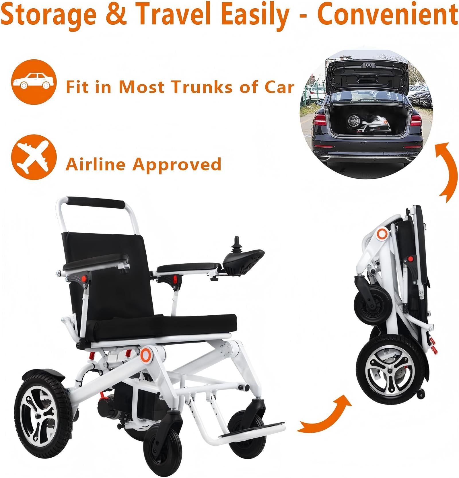 Travel-Friendly & Airline Approved – Lightweight electric wheelchair foldable design meets airline standards; folds in 3 seconds and fits in car trunks for effortless travel.