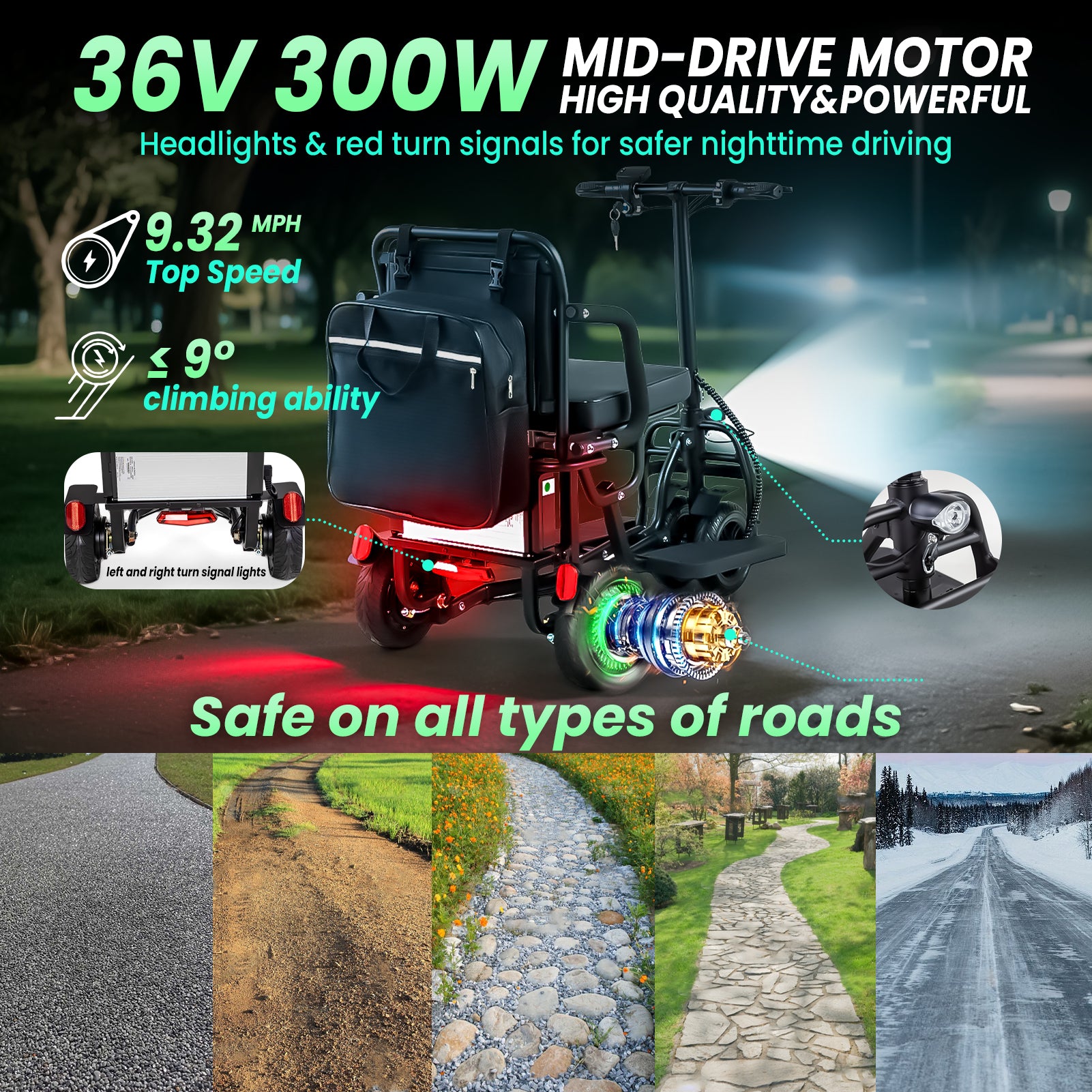 Powerful & Long-Lasting: Equipped with a 300W mid-drive motor and 36V 8Ah lithium battery, offering a max speed of 15km/h (9.32 mph) and a range of up to 32km (20 miles). Supports 2 charging modes (direct or detachable battery).