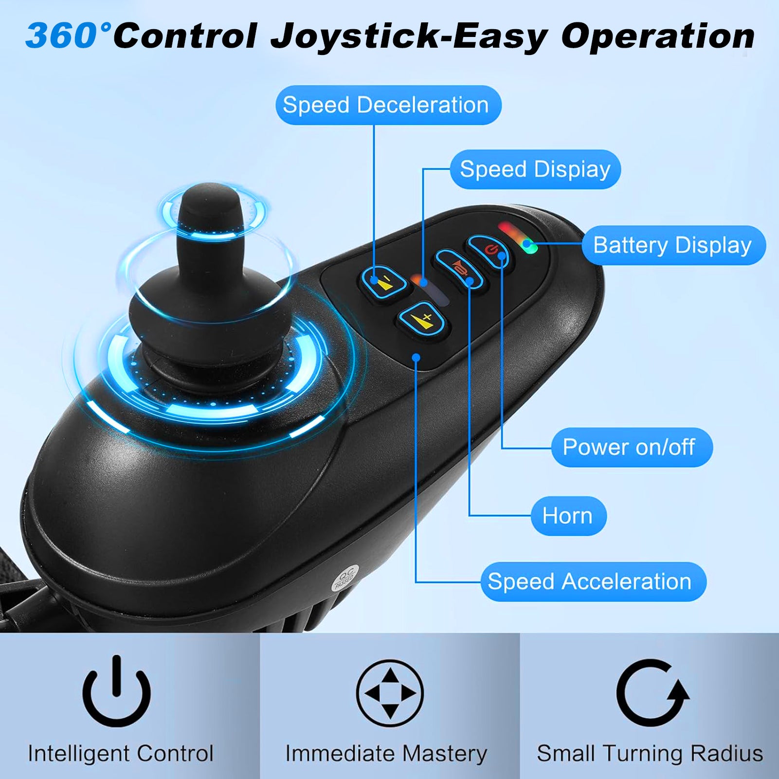 Smart Control & Comfort: Includes a 360° waterproof joystick (switchable between left and right) and an ergonomic, breathable cushion with liftable armrests for easy side access.