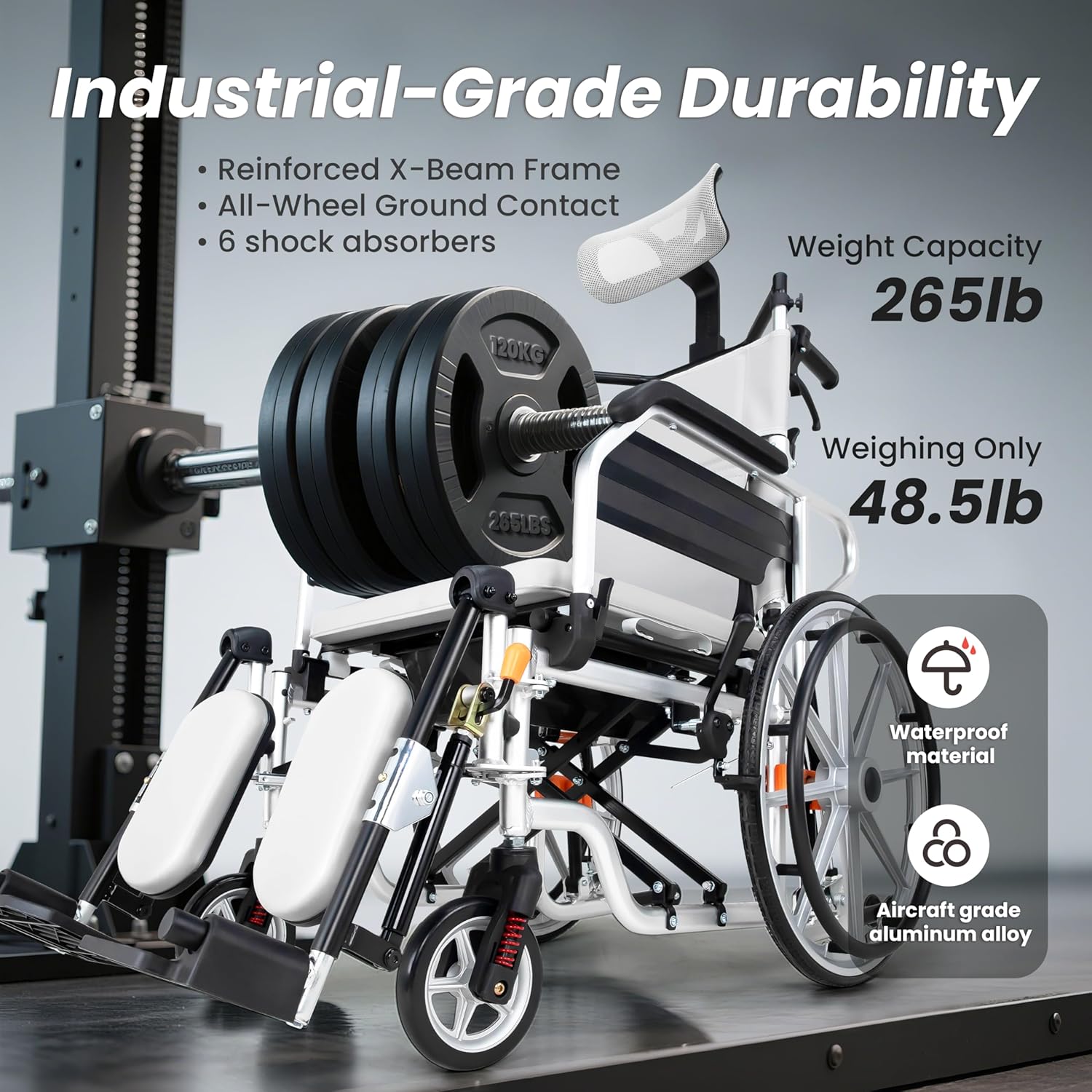 Safety-First Design-Equipped with front/rear brakes, anti-tip wheels, and a seatbelt for security. The frame supports up to 265 lbs.