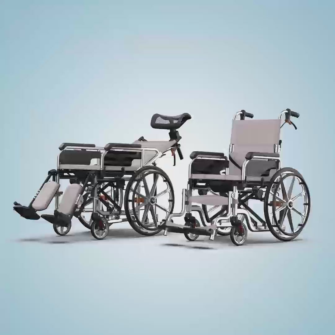 Comfort, Support & 3-in-1 Versatility-This innovative recline wheelchair seamlessly transforms into a bed and stretcher, perfect for home, hospital, or travel.